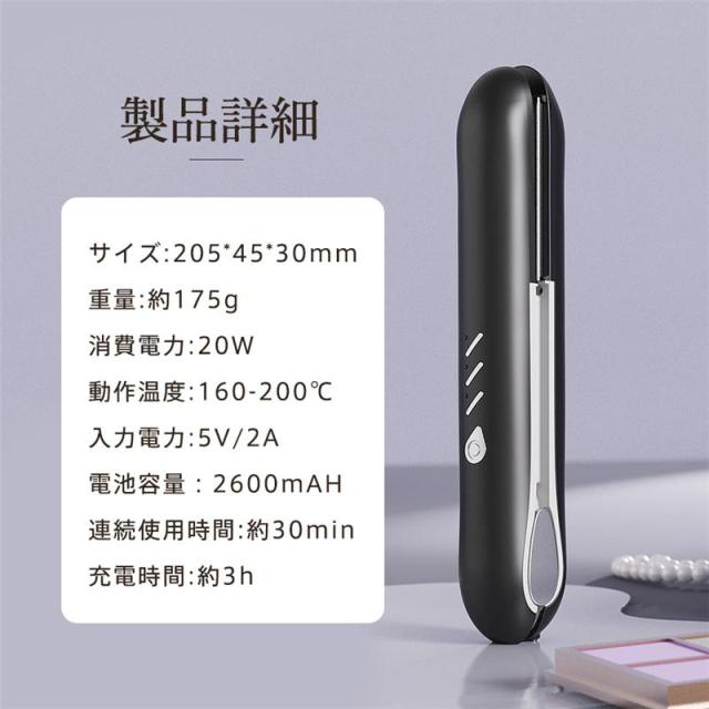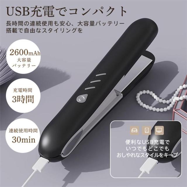 ヘアアイロン コードレス USB充電式 温度表示 ストレート カール 一台多役 ミニアイロン ワイヤレス 前髪 軽量 男女兼用 コードレスアイロン 自動電源OFF 誤起動防止ロック 大容量バッテリー 初心者向け 家庭 旅行 出張 通勤 贈り物 外出 デート 学校 職場