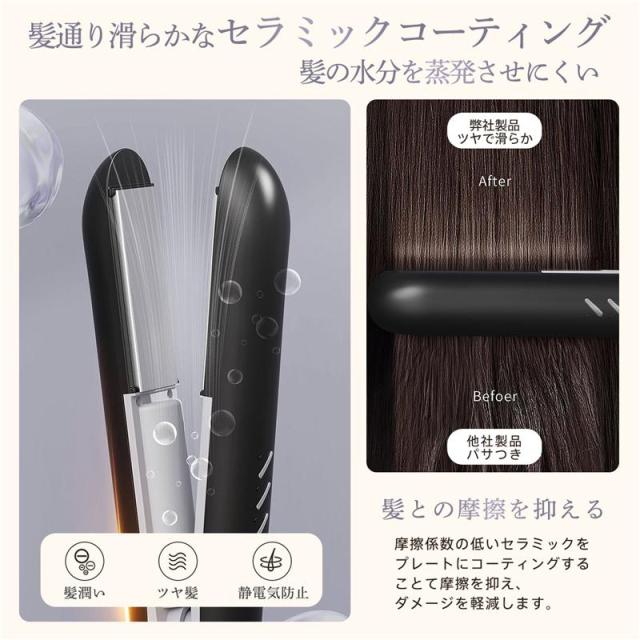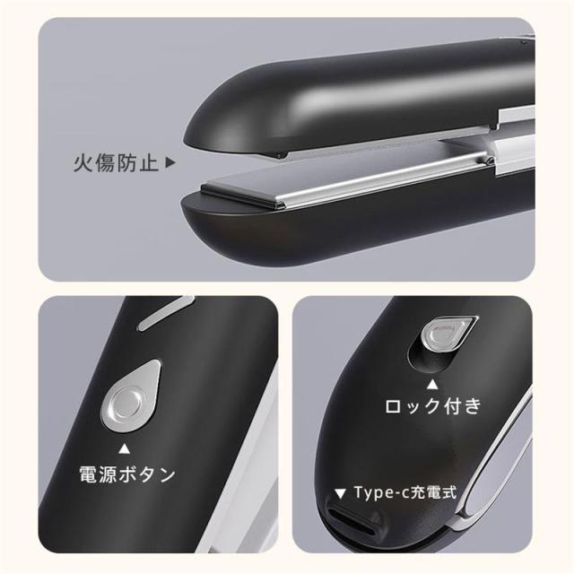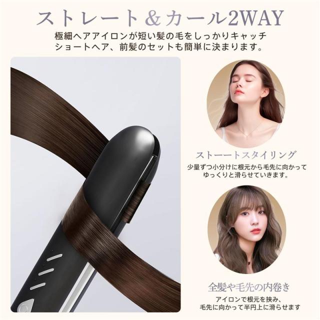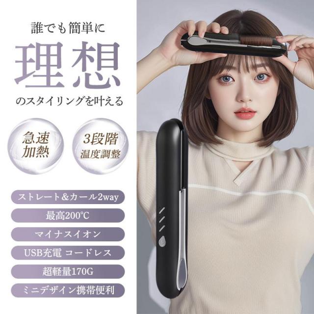 ヘアアイロン ストレート カール 2way ストレートアイロン 急速加熱 3段階温度調整 コードレス ミニ 充電式 コンパクト 携帯用 前髪 軽量