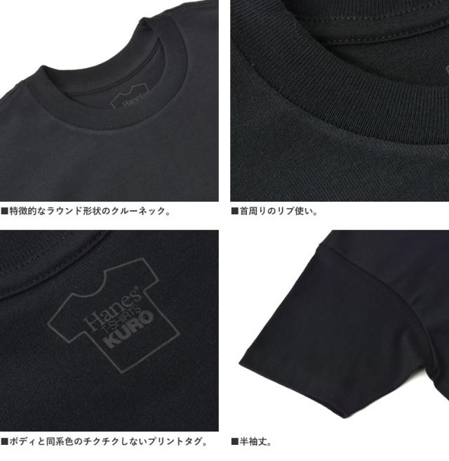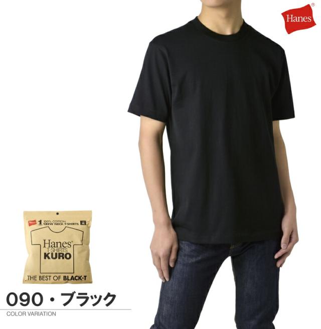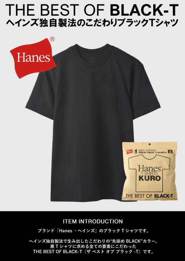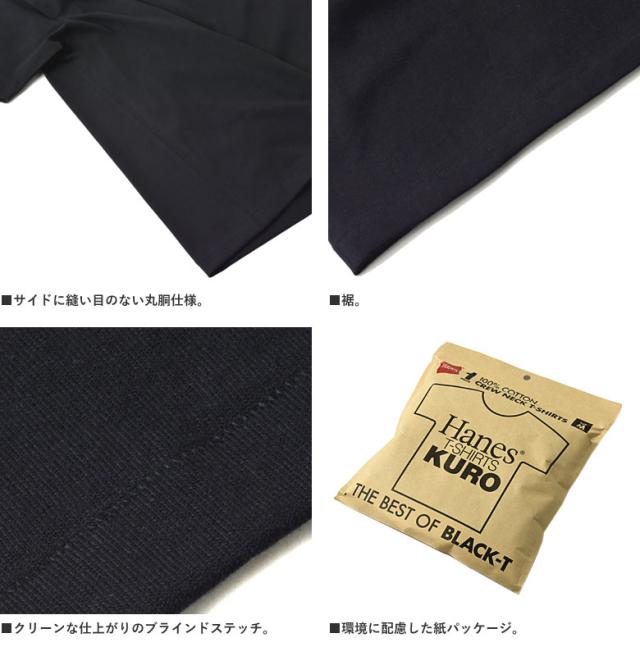 Hanes ヘインズ KURO クルーネックTシャツ THE BEST OF BLACK-T 半袖 7オンス コットン100% 黒T クロ HM1-B201 HM1-D202 正規品【D1D】【パケ1】【A】