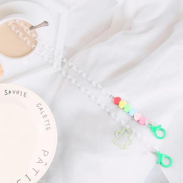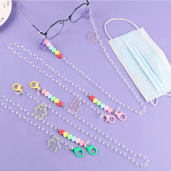 クリエイティブなアクリル紛失防止サングラス,キャンディーカラー,子供用ファッションチェーン,クマ,保護カバー,ネックストラップ,2023