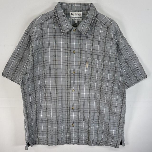 古着 コロンビア Columbia 半袖シャツ ワンポイント ロゴ ボタンシャツ L 水色系 チェック メンズ