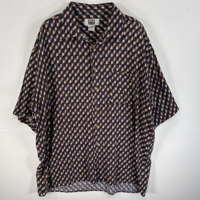 古着 C・I・T・Y STREETS 半袖シャツ レーヨンシャツ 柄シャツ 大きいサイズ XL ネイビー系 総柄 メンズ