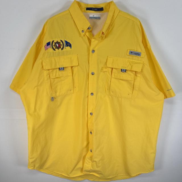 古着 コロンビア Columbia 半袖シャツ ワンポイント ロゴ PFG フラップポケ XL イエロー 無地 メンズ