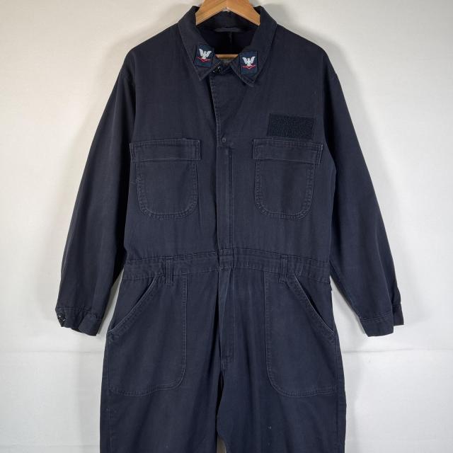古着 ミリタリー 長袖つなぎ オールインワン ワーク 作業着 ベルトループ 米軍実物 大きいサイズ サイドポケット 46S ネイビー メンズ