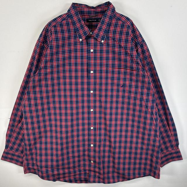 古着 ノーティカ NAUTICA 長袖シャツ ワンポイント ロゴ 刺繍 大きいサイズ ボタンダウンシャツ 3XL レッド系 チェック メンズ