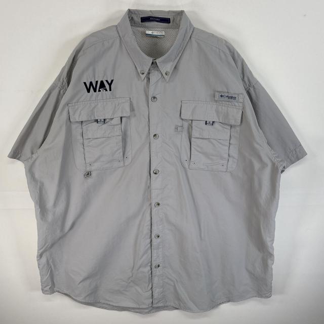 古着 コロンビア Columbia 半袖シャツ PFG ワンポイント ロゴ フラップポケ XXL グレー 無地 メンズ