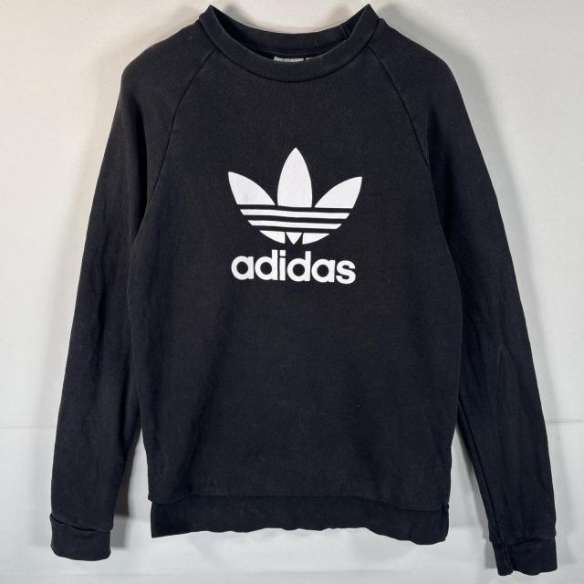古着 アディダス adidas スウェット トレーナー トレフォイルロゴ プリントデザイン ラグラン S ブラック メンズ
