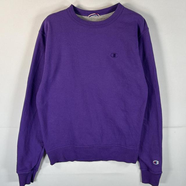 古着 チャンピオン Champion スウェット クルーネック ワンポイントロゴ刺繍 ワッペン トレーナー S パープル メンズ