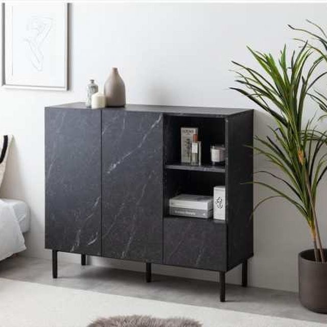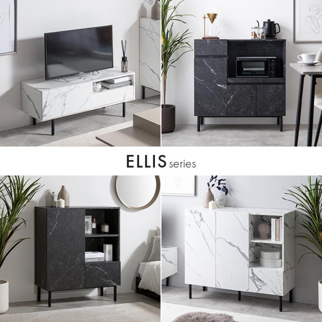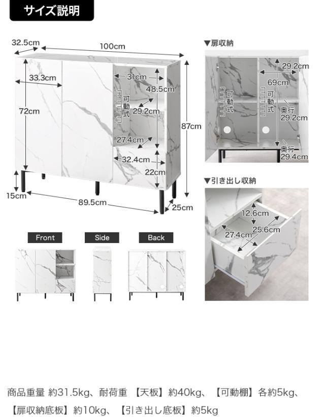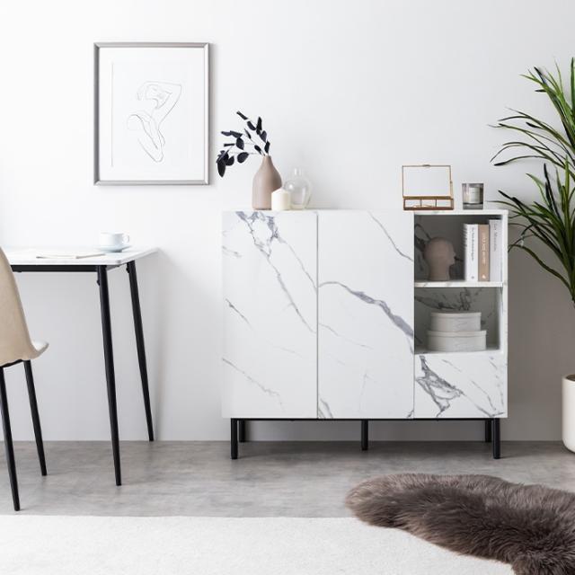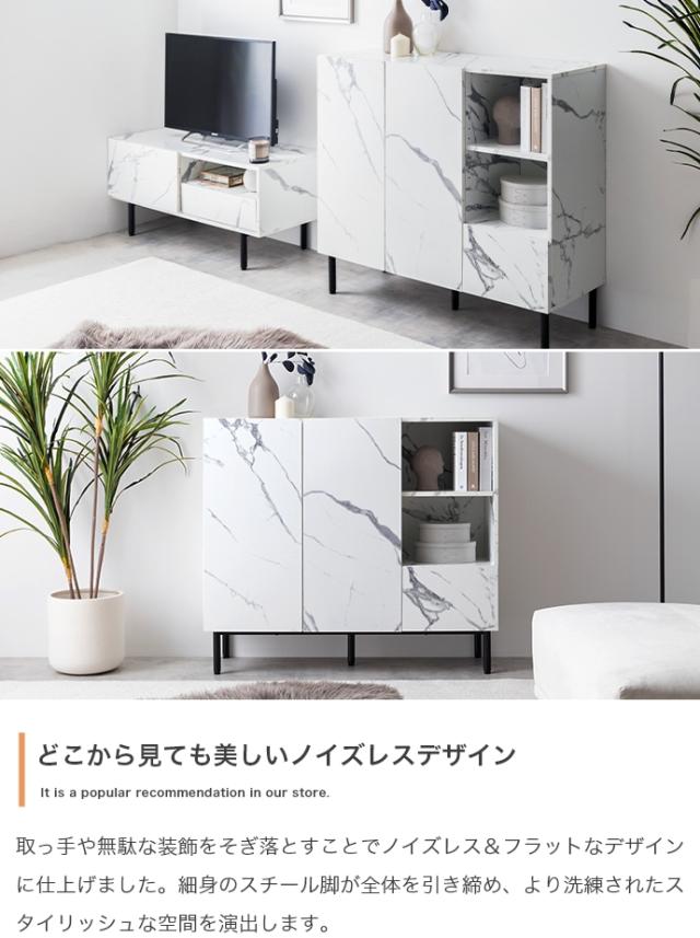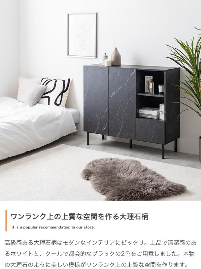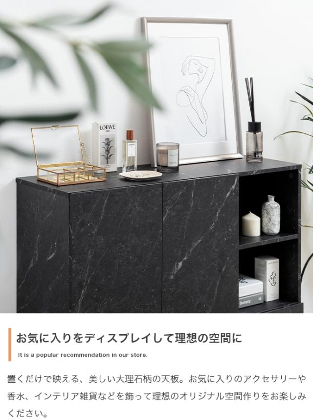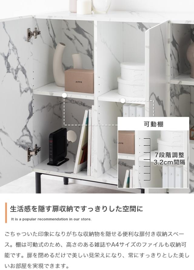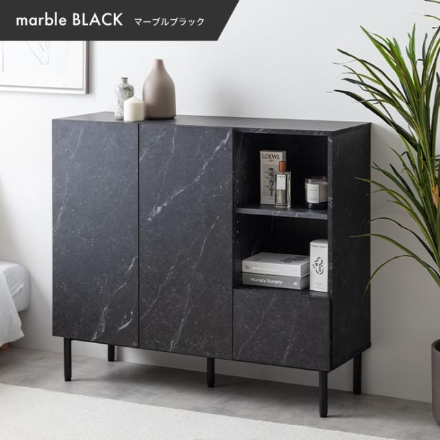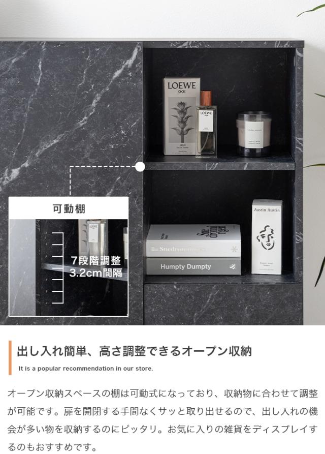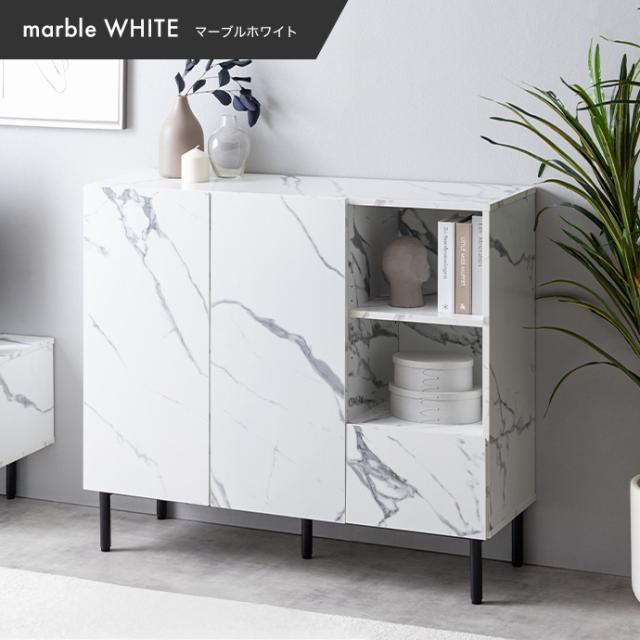 ★国内メーカー保証付★ 大理石柄キャビネット 収納力抜群 可動棚 幅100cm 横揺れ防止具付き メーカー直送 送料無料