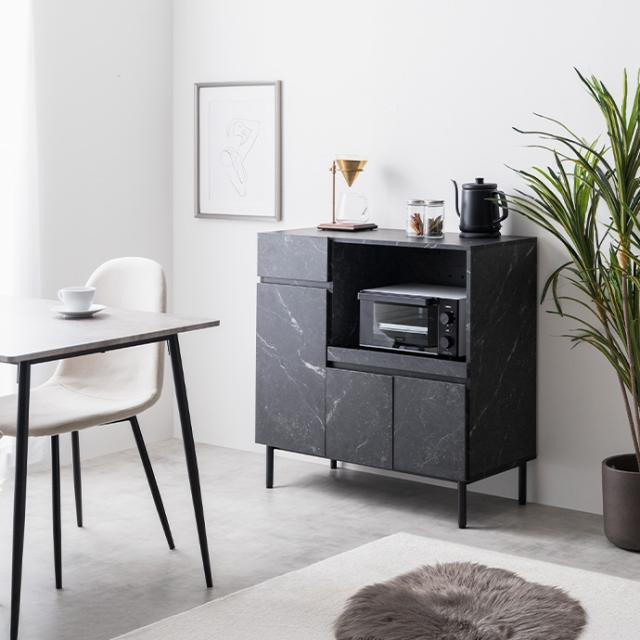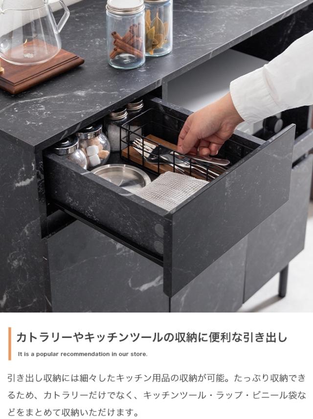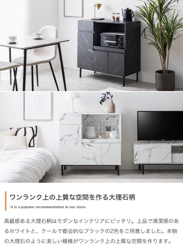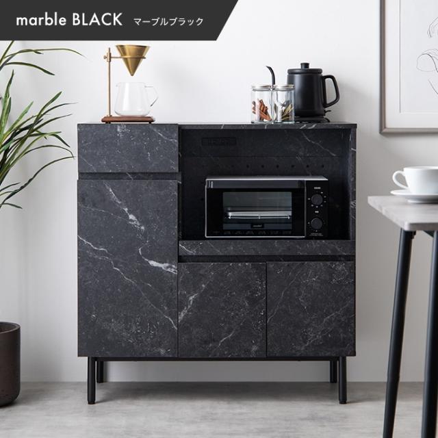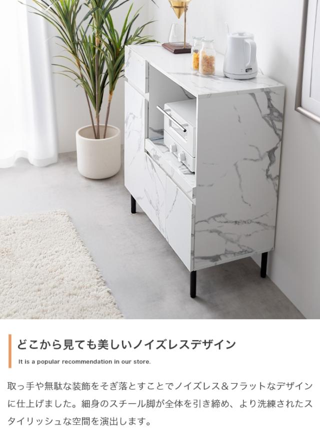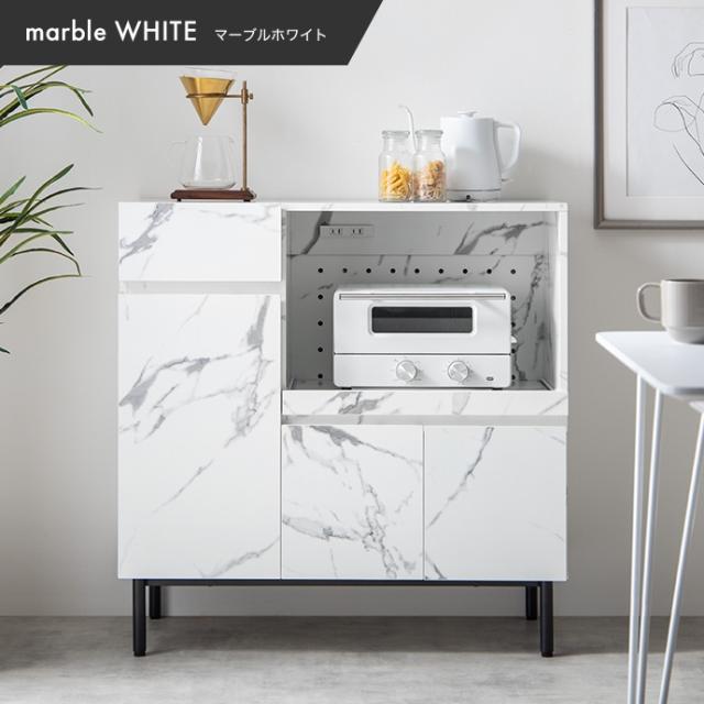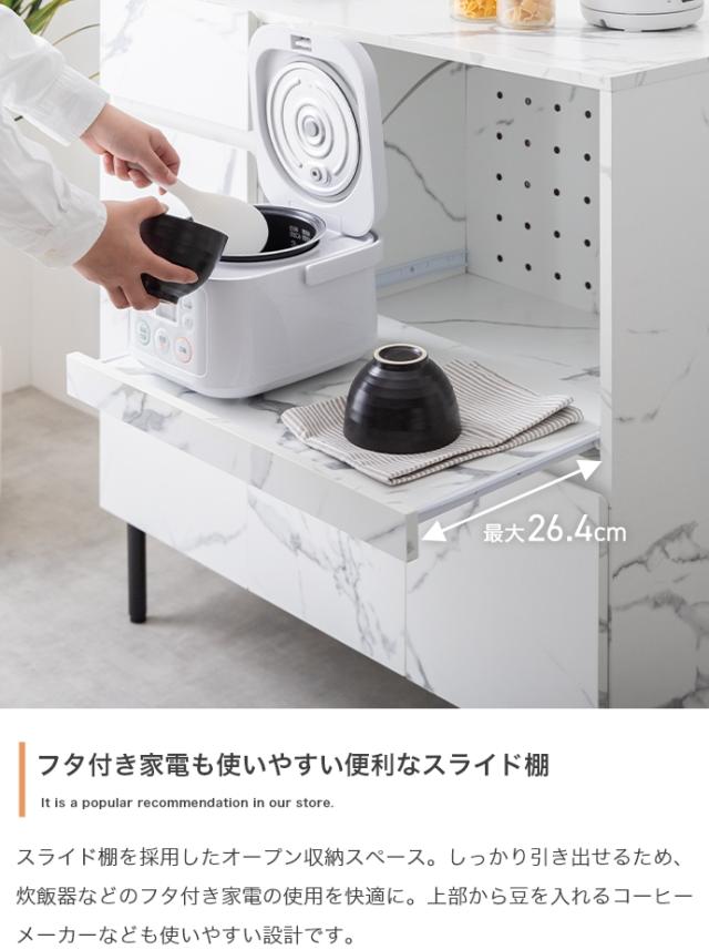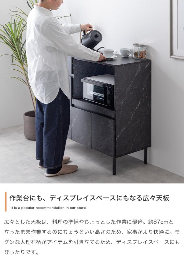 ★国内メーカー保証付★ 大理石柄レンジ台 2口コンセント スライドトレー 幅86cm 高級感 メーカー直送 送料無料