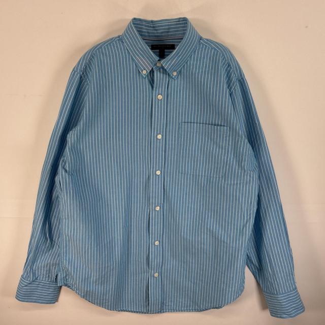 古着 バナナリパブリック Banana Republic 長袖シャツ ボタンダウン 胸ポケ カラーシャツ L 水色系 ストライプ メンズ