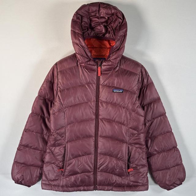 古着 パタゴニア patagonia ダウンジャケット ワンポイントロゴ アウトドア パーカー フーディー L 12 レッド系 レディース
