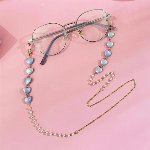 Bohemian Crystal Glasses Chain Women heart Pearl Beaded Mask Hanging Rope Eyeglass Accessories Mask Chain Sunglasses Rope Chain
