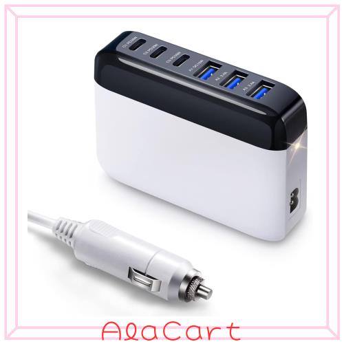 BESTEK シガーソケット 充電器 カーチャージャー 「強化版」 USB-C PD 30W 3口/ USB-A QC 18W 6ポート 合計125W出力 車載充電器 USB急速