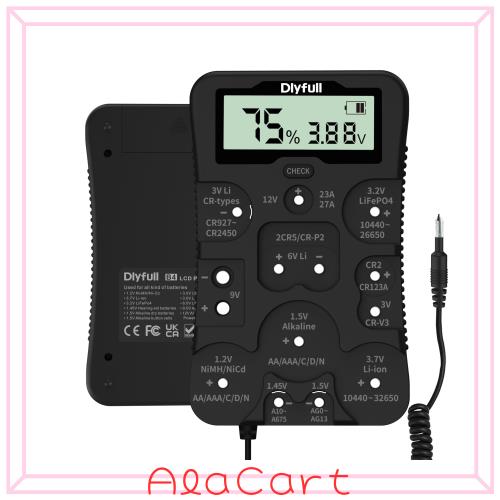 Dlyfull 多機能 電池チェッカー 充電電池/乾電池 単1 単2 単3 単4 単5 6V 9Vに対応 バッテリーチェッカー 12種類の電池をサポート 1.2V 1