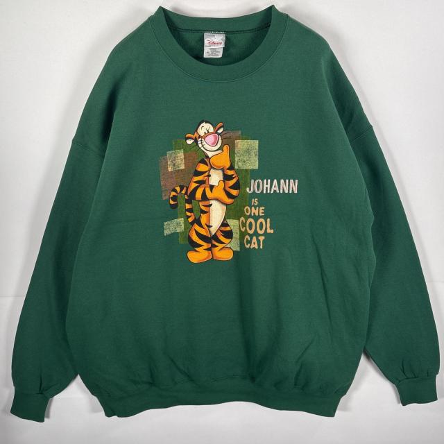 古着 ディズニーストア Disney store スウェット ティガー ラバープリント クルーネック ビッグサイズ 肉厚 XXL グリーン メンズ