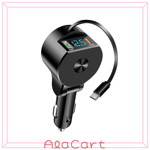 【3台同時に充電】シガーソケット USB-Aポート+ USB-Cポート+1 USB-C 巻取り式ケーブル、3台のデバイスを同時に充電でき。出張、自走、家族・グループ・団体旅行など、さまざまなシーンで活用できます。※ 3台同時に充電する場合は、総合出力が下がることをご了承ください。