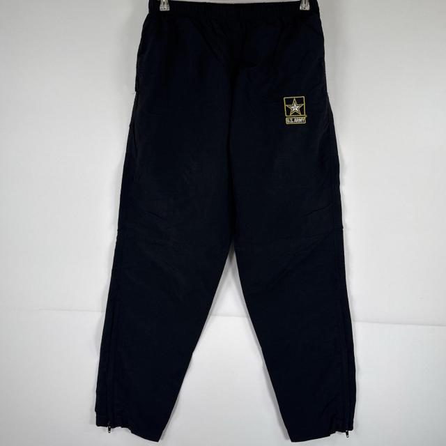 古着 ミリタリーロングパンツ army トレーニングパンツ 刺繍 ロゴ ナイロン イージーパンツ 米軍 実物 ブラック メンズ