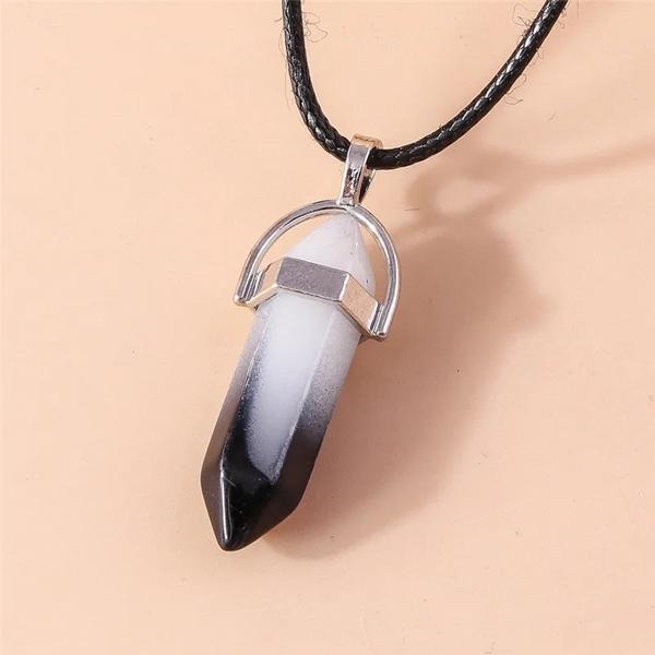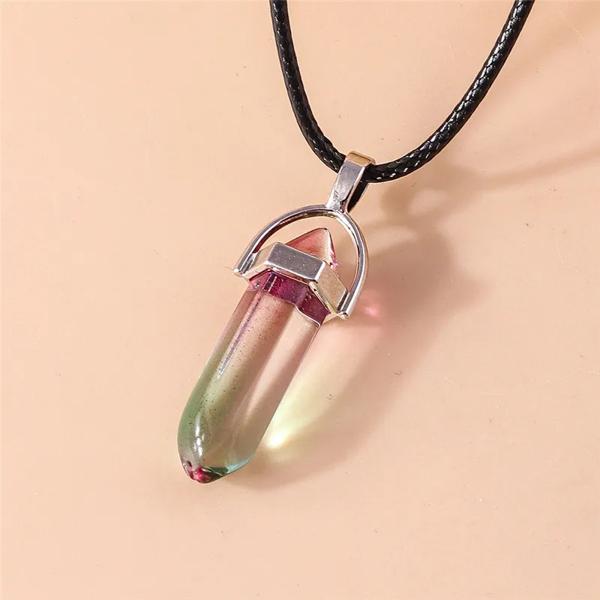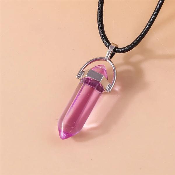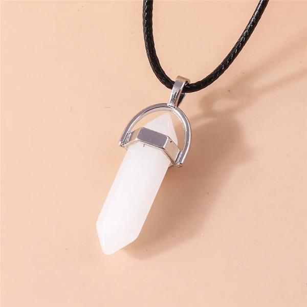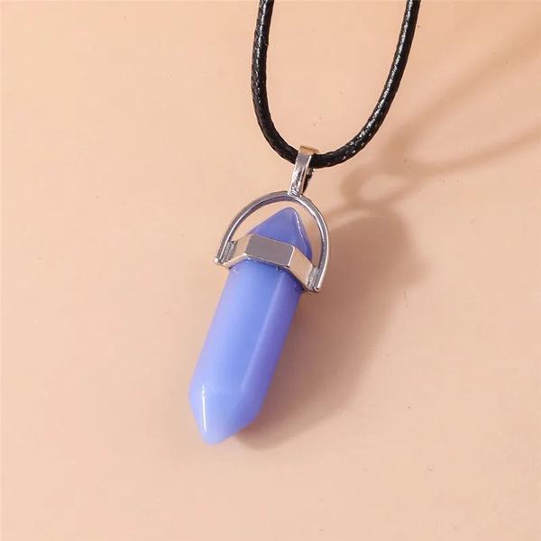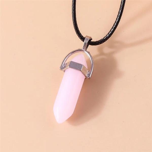 天然石クォーツラピスラズオパールネックレス,ピンククリスタルストーン六角列ペンダント,レザーチェーンネックレス