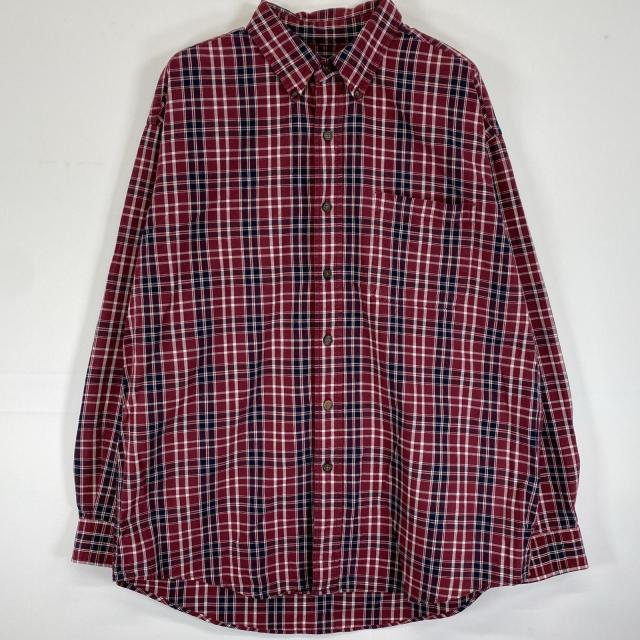 古着 90s/90年代 エディー・バウアー Eddie Bauer 長袖シャツ ボタンダウン 胸ポケット 厚手 L レッド系 チェック メンズ