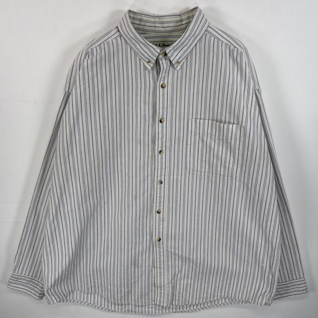 古着 エルエルビーン L.L.Bean 長袖シャツ ボタンダウンシャツ 大きいサイズ 胸ポケ XL ホワイト系 ストライプ メンズ