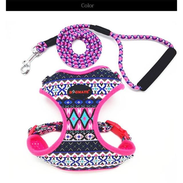 【ポイント5倍!】犬 猫 ハーネス リード付 ペット 服 ボヘミア ピンク 胴輪 キャット ドッグ メッシュ