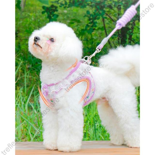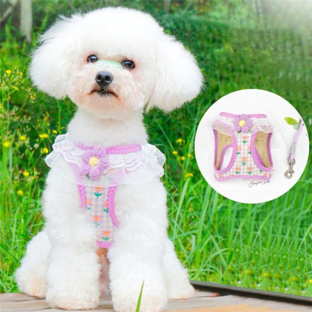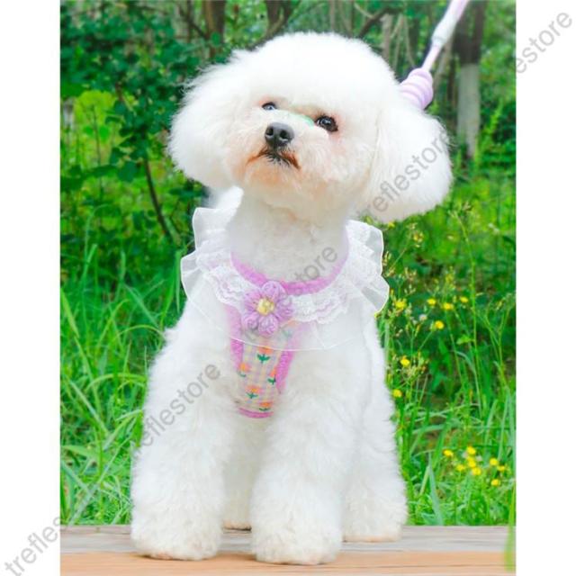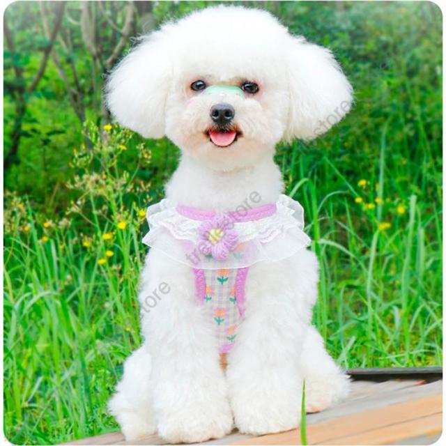 【ポイント5倍!】犬 猫 ハーネス リード付 フリル フラワー カラフル ウェアハーネス ペット 服 胴輪 キャット ドッグ