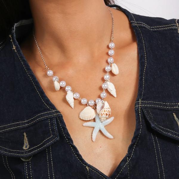 マルチレイヤーシェルネックレス,新しいファッション,チョーカー,パール,女性用,ビーチ用
