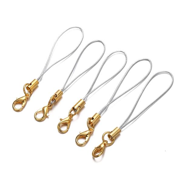 ゴールドカラーのキーホルダーコード,ロブスタークラスプ,ラリアットストラップコード,DIY,ジュエリー作り,20〜100個。