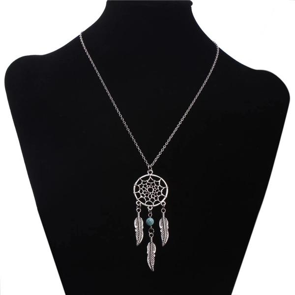 名前: ドリームキャッチャーペンダントネックレスロングメタルタッセルフェザーヴィンテージ女性自由奔放に生きるシルバーファッションジュエリーギフトジュエリー