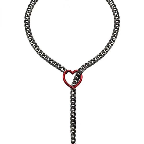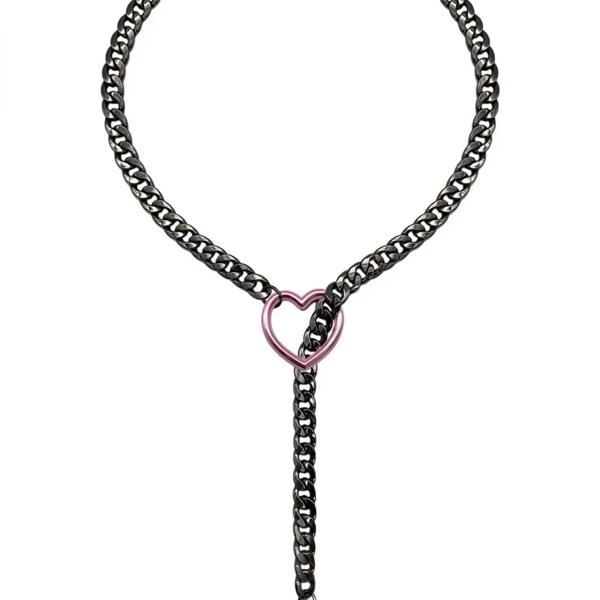 女性用ステンレススチールネックレス,ハート型チェーン,Oリング,パンクロック,キューバジュエリー,調節可能なラリアットとチェーンジュエリー