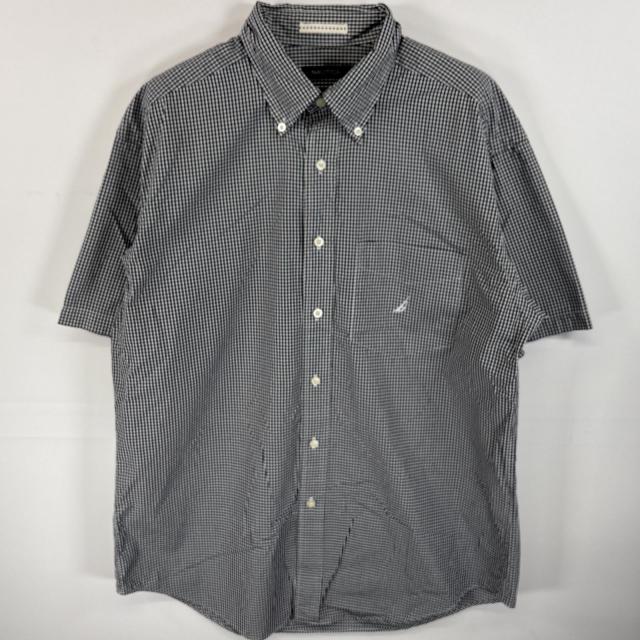 古着 ノーティカ NAUTICA 半袖シャツ ボタンダウンシャツ ワンポイント ロゴ 刺繍 胸ポケ L ブラック系 チェック メンズ