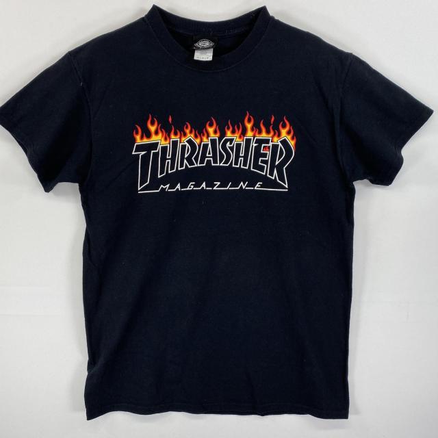 古着 スラッシャー THRASHER 半袖Tシャツ ラバープリント ブランドロゴ ファイヤーパターン M ブラック メンズ