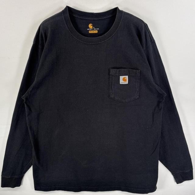 古着 カーハート Carhartt 長袖Tシャツ ワンポイント ロゴ 肉厚 胸ポケ L ブラック 無地 メンズ