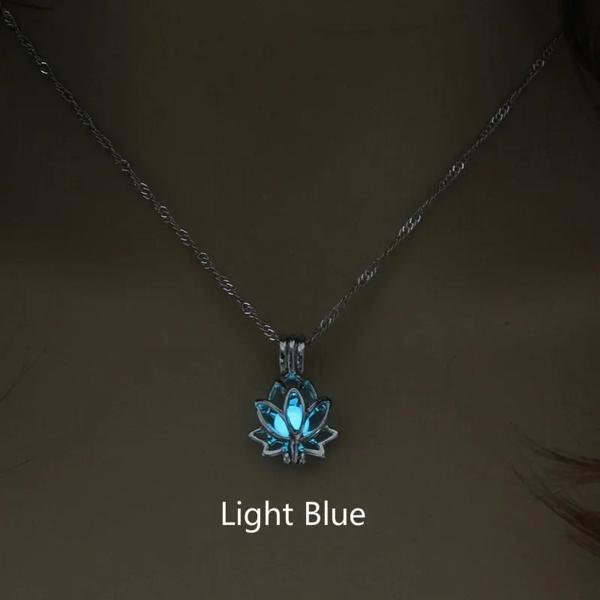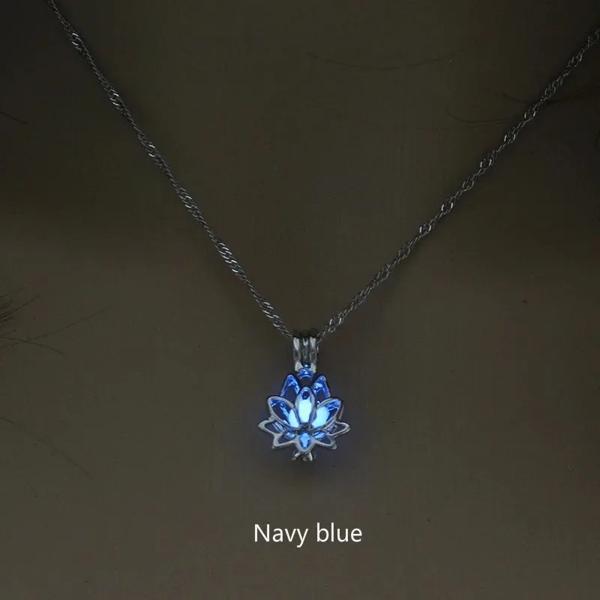 女性のための蓮の花の形をしたペンダントネックレス,暗闇の中で輝く,月,ヨガ,祈り,仏教のジュエリー