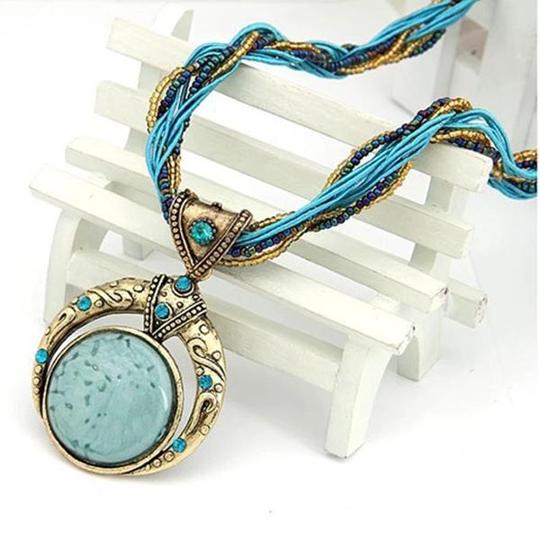 ボヘミアンスタイルのマルチレイヤービーズチェーン,クリスタルペンダント,ヴィンテージネックレス,人気のジュエリー,レトロファッション