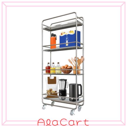 高品質ステンレス製:高品質なステンレス素材を採用し、湿気の多い場所でも安心して使用できます。部屋の様々な隙間に自由に配置できるので、お部屋がすっきりと美しくなります。スリムで特別なデザインのキッチンワゴンです。