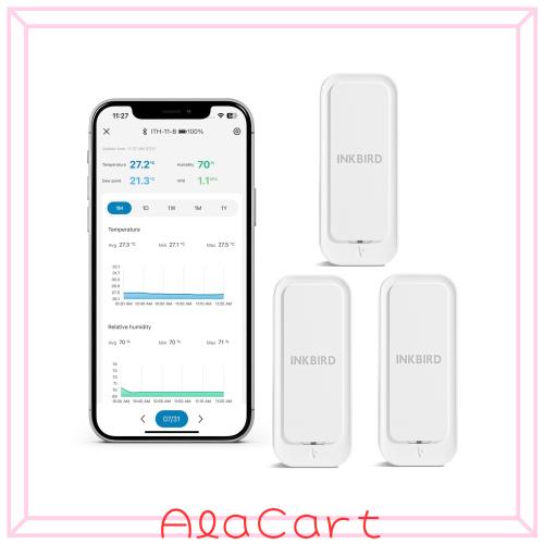 INKBIRD 温湿度計 3個セット Bluetooth 防水温度計 湿度計 高精度 電池付属 温度湿度データロガー ワイヤレス 室内 屋外用 温度計 コンパ