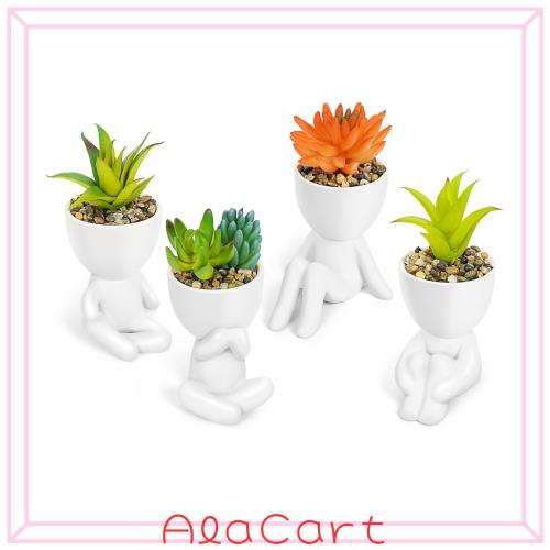 【ユニークな人工観葉植物のデザイン】:これらの小さなフェイクグリーンは、4つの白色人型植木鉢が含まれ、植木鉢の設計姿勢は多様でリアルであります。 この人工観葉植物セットは、お部屋の一角に置くだけで、お部屋のアクセントになります。