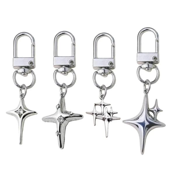 クリスタルスタームーンキーホルダー Y2K メタルペンダントキーチェーンホリデーカーキーリング女性用バッグ飾りバックパック装飾