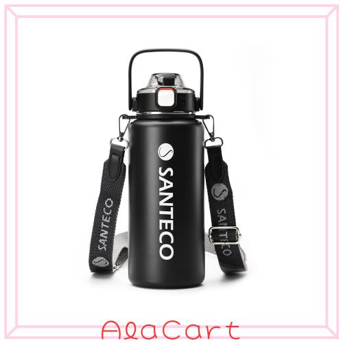 SANTECO 水筒 真空断熱スポーツボトル 1.2L 取りはずしでき肩に 保冷 保温 魔法瓶 ストロー付き 直飲み スポーツドリンク対応 おしゃれ