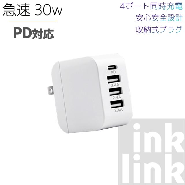 30W コンパクト急速充電器 (PD 充電器 USB-C) 【PD対応/PSE技術基準適合/折りたたみ式プラグ】iPad iPhone Galaxy Android スマートフォン type-c タイプc