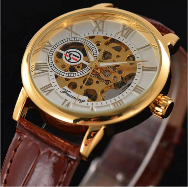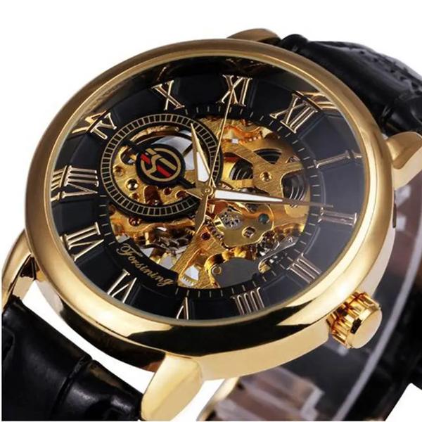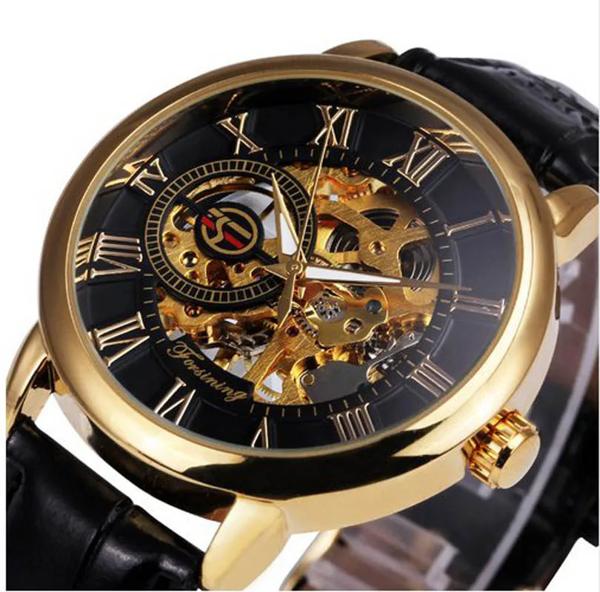 男性用ゴールドレザーメカニカルウォッチ,ラグジュアリーブランド,3Dロゴ,透明ケース,トップブランド,ラグジュアリー,ファッショナブル,2022