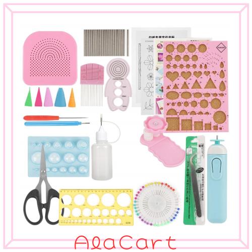 【セットの内容】キルティングペーパーツールセットには、接着剤定規、はさみ、ウェーブシェイパー、ディストリビューター、電気テスター、千枚通し、縦糸、ストリッパー、ピンセット、ビーズ針、タワートップペーパーなどが含まれています。