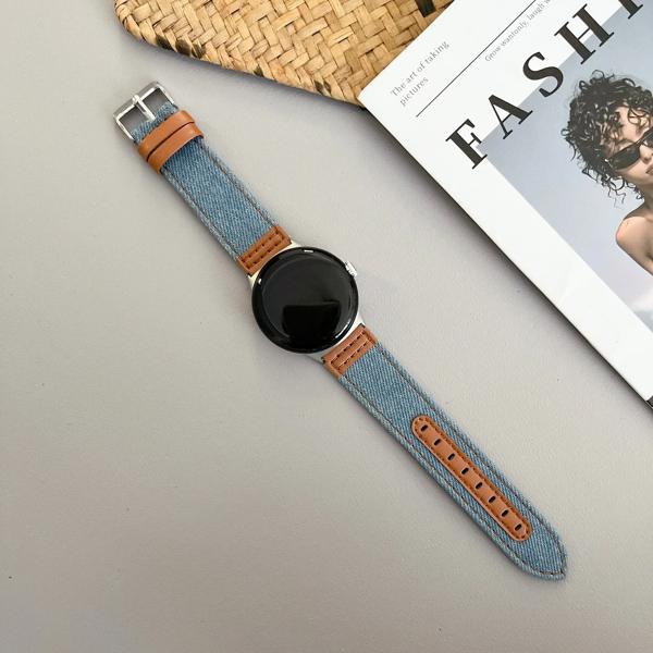 GooglePixelウォッチ用デニムキャンバスレザーストラップ、交換用ウォッチバンド、ウォッチバンド、ブレスレットアクセサリー