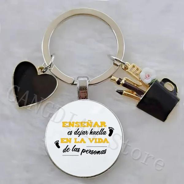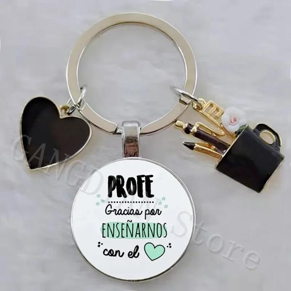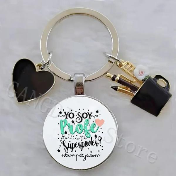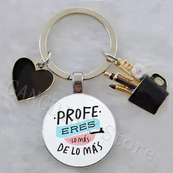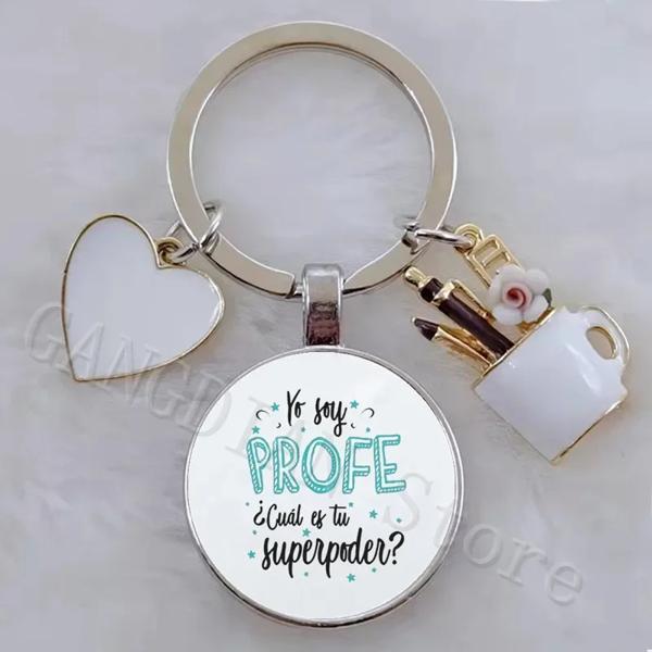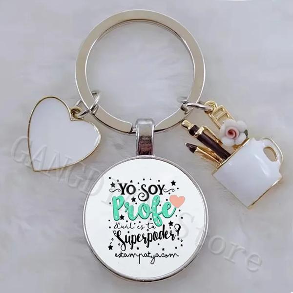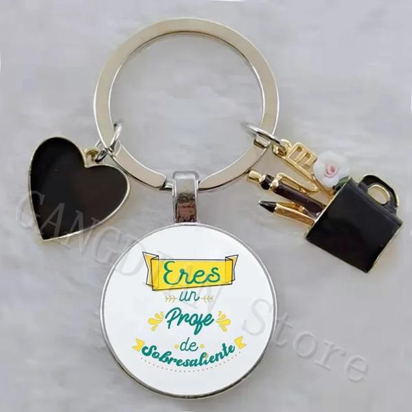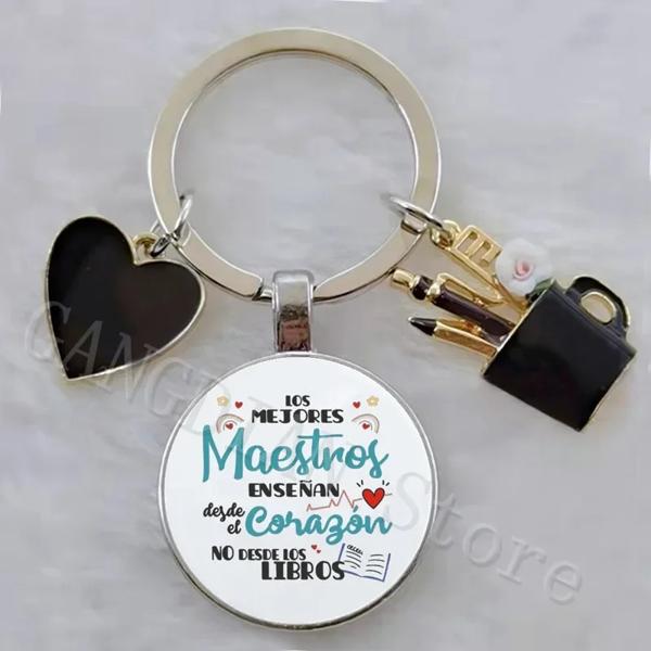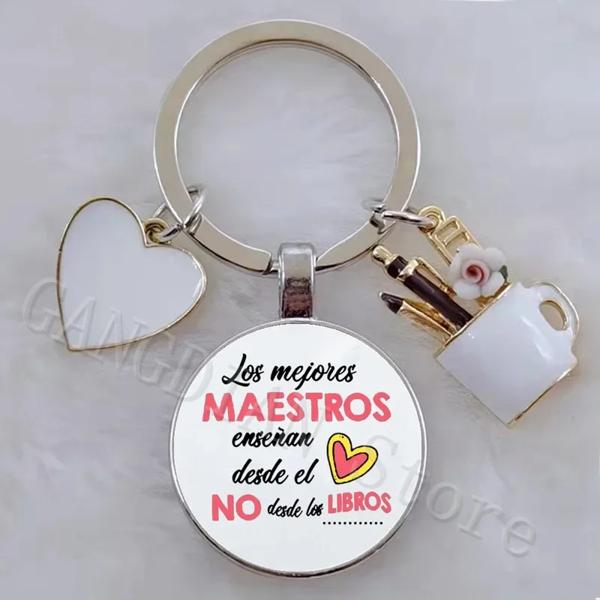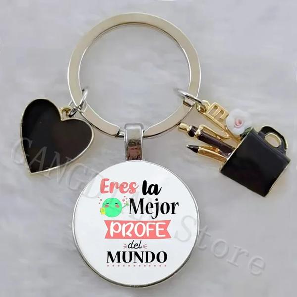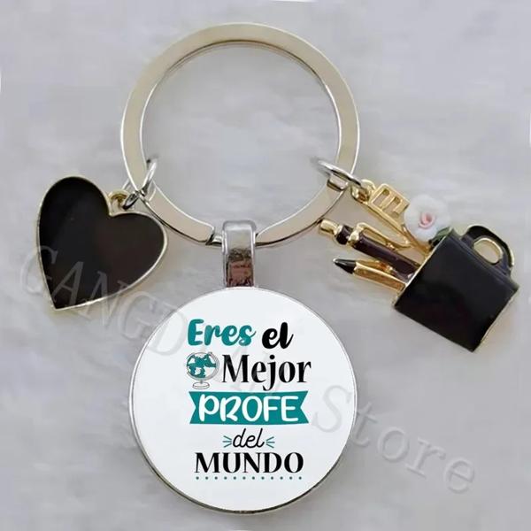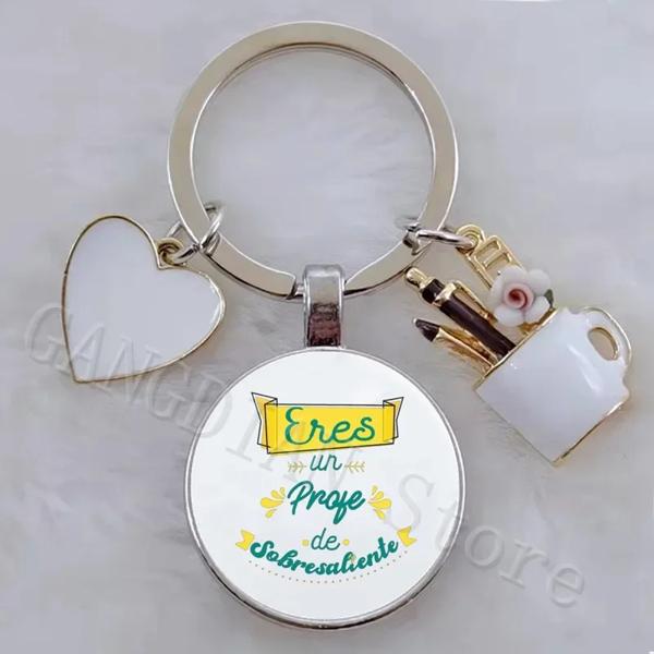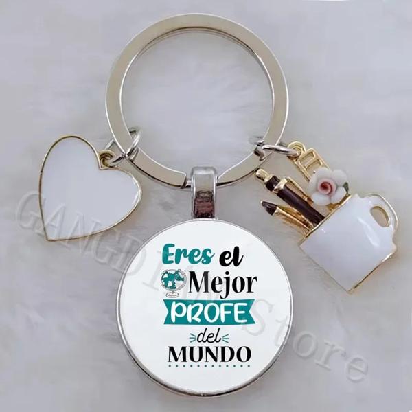 スペイン柄のガラスキーホルダー、世界最高の先生の日プレゼント