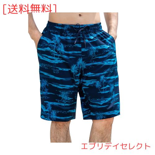 [NARANNBU] 水着 メンズ サーフパンツ 海水パンツ 膝丈 男性水着 メッシュインナー 速乾通気 サウナ水着 海パン P3ヤシの木&紺 S