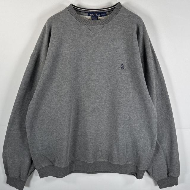 古着 90s/90年代 ノーティカ NAUTICA スウェット ワンポイントロゴ刺繍 Vガゼット 大きいサイズ クルーネック XL グレー メンズ