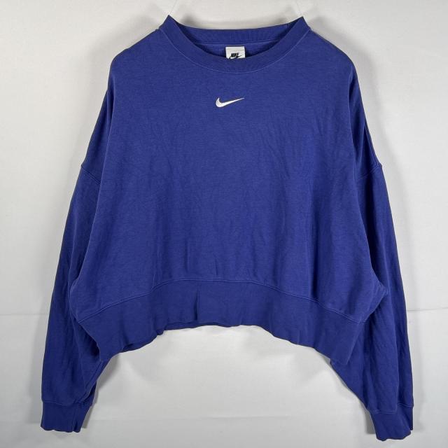 古着 ナイキ NIKE スウェット クロップドトレーナー 短丈 クルーネック センターロゴ ワンポイントロゴ刺繍 M パープル系 レディース