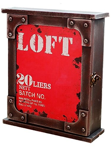 ビンテージ加工を施し、レトロでお洒落な感じに仕上がってます。 レトロなロックを開けるとと中には6個のアンティーク風フック!